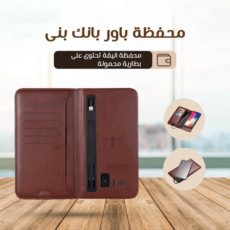 • محفظة تحتوي على بنك الطاقة المحمول لشحن الأجهزة الإلكترونية.