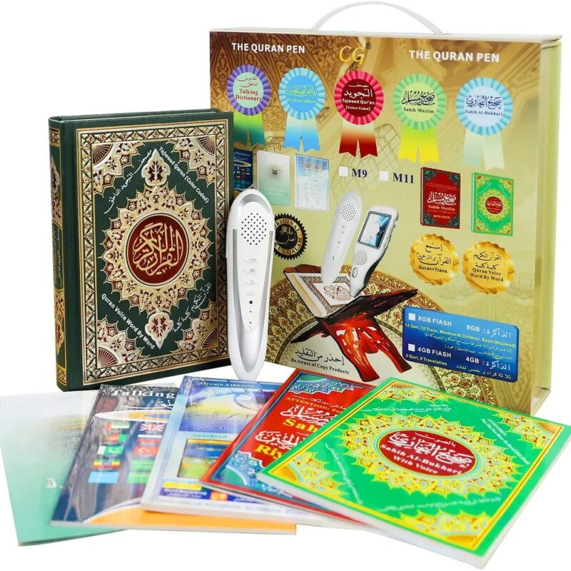 • يحتوي القلم على( القرآن الكريم كاملاً بصوت 16 قارئاً - رياض الصالحين وحصن المسلم صوتيًا - صحيح البخاري وصحيح مسلم صوتيًا - التفسير الصوتي بعدة لغات - أسماء الله الحسنى صوتيًا - أناشيد اسلامية - أدعية وأذكار صوتية - القاعدة النورانية لتعليم القراءة والكتابة واحكام التجويد)