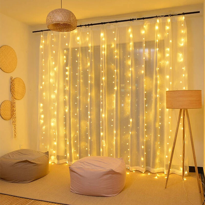 • الإضاءة عبارة عن لمبات متشابكة على هيئة ستارة أنيقة