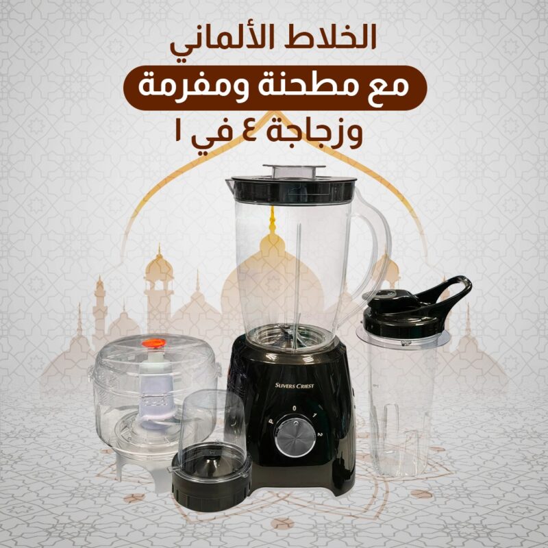 • الخلاط الألماني مع مطحنة ومفرمة وزجاجة ٤*١