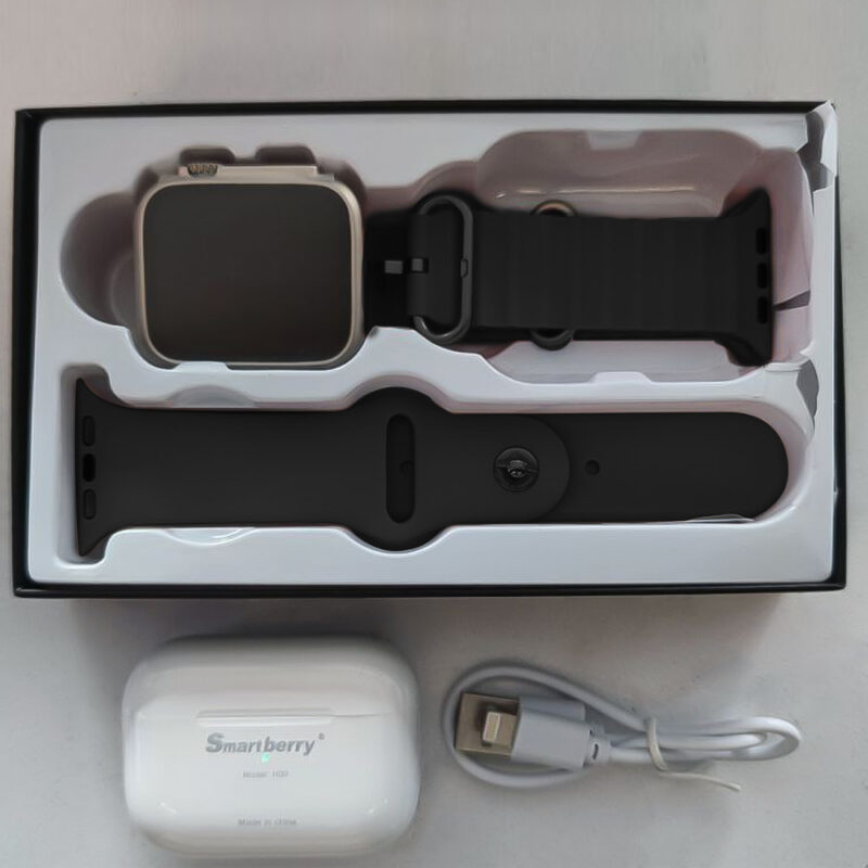 ما تعب حالك و تلف كثير، مع الساعة ultra + ايربودز ، راح تتحكم بجوالك بكل سهولة من غير ما تخرجه من الحقيبة، تقدر تستقبل جميع الإشعارات و إخطارات المكالمات، مع سماعة بصوت نقي وعالي الدقة، بتقنية بلوتوث 5.0، لحق العرض بسعر خيالي.