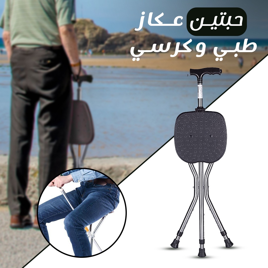• عصا طبية مرة ثابتة ومريحة، مزودة بمقعد (كرسي) مريح في الجلوس لكبار السن.