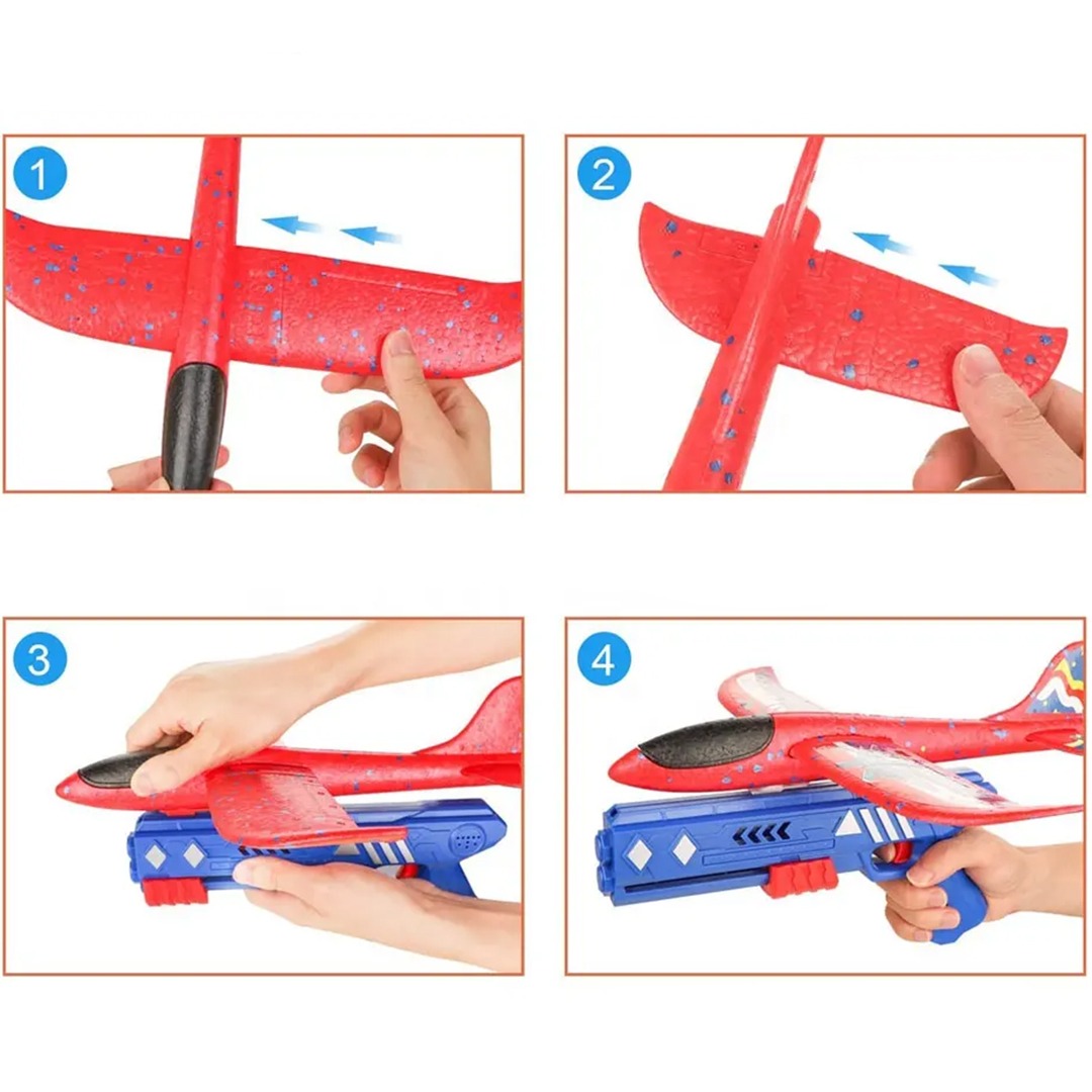 • تحتوي حزمة الطائرات الشراعية على طائرتين ملونتين ، وقاذفة طائرات لعبة ، وملصق هدية عشوائي.